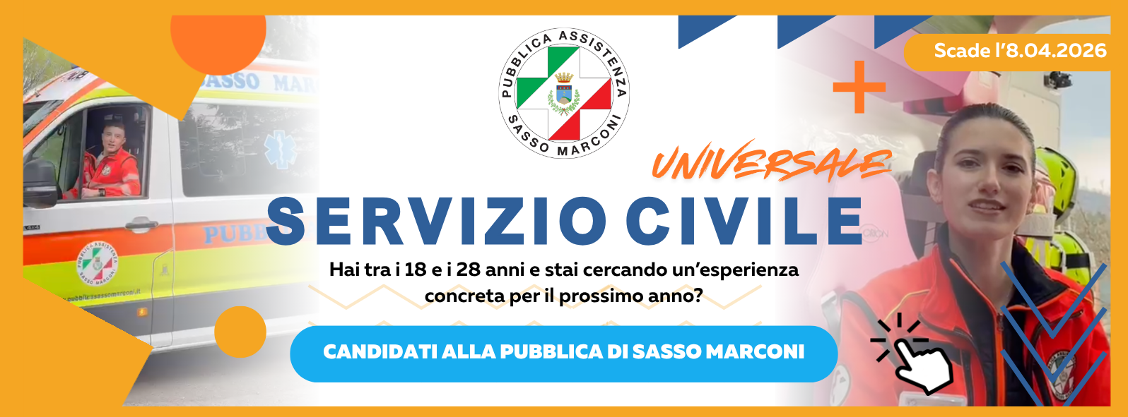 Alla Pubblica Assistenza Sasso Marconi potrai vivere un anno a stretto contatto con il territorio, le persone e i servizi dell’associazione.